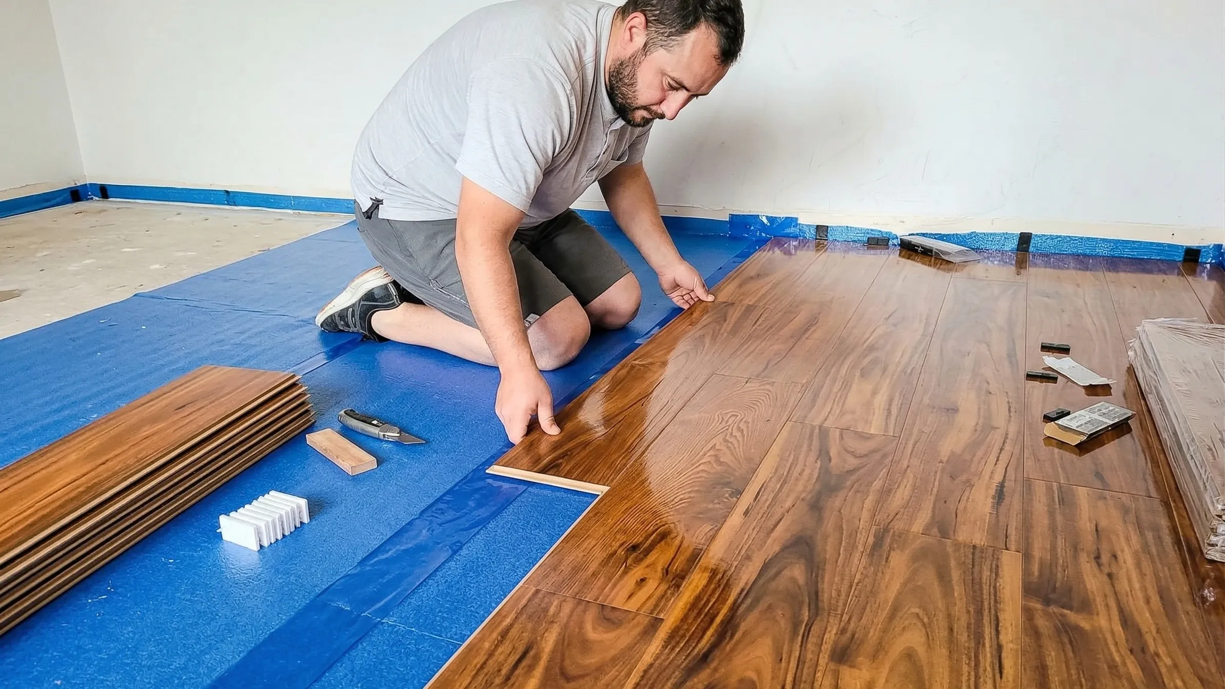 We prepare the subfloor and install underlayment for sound dampening and moisture protection.